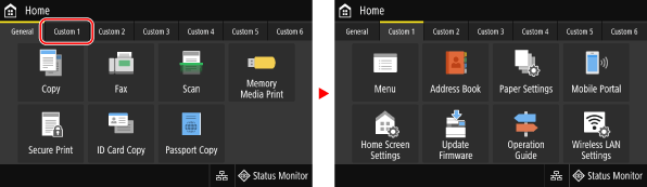 בעת הקשה על שם פריט או כפתור, ניתן לבחור את הפריט. המסך שנבחר מוצג, או שהפונקציה שנבחרה מבוצעת.