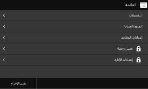 مسح الإعدادات تلقائيًابشكل افتراضي، في حالة عدم إجراء أي عمليات بعد فترة زمنية معينة، تُمسَح الإعدادات قيد التكوين على الشاشة، وتُعرض الشاشة [الرئيسية]. يمكنك تغيير الوقت الذي تُمسح فيه الإعدادات والشاشة المعروضة بعد مروره.