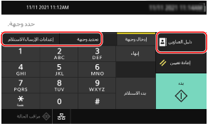 أدخل رقم الفاكس باستخدام المفاتيح الرقمية، أو حدد وجهة مسجلة لإجراء مكالمة هاتفية.