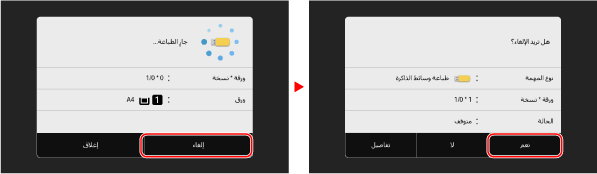عند إلغاء الطباعة باستخدام لوحة التشغيل