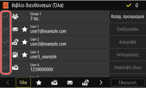 Εάν ο προορισμός στο Βιβλίο διευθύνσεων έχει καθοριστεί με «Αγαπημένες ρυθμίσεις», η λειτουργία της επεξεργασίας ή της διαγραφής εφαρμόζεται και στις «Αγαπημένες ρυθμίσεις». Καταχώριση και κλήση αγαπημένων ρυθμίσεων