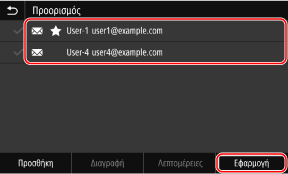 Εάν εμφανιστεί η οθόνη [PIN βιβλίου διευθύνσεων], εισαγάγετε το PIN και πατήστε [Εφαρμογή].