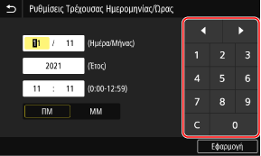 Πατήστε τους αριθμούς στα αριθμητικά πλήκτρα για να εισαγάγετε μια τιμή.