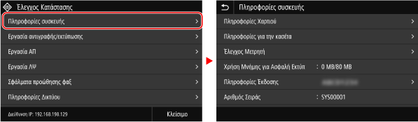 Όταν πατάτε ένα όνομα στοιχείου ή ένα κουμπί, μπορείτε να επιλέξετε το στοιχείο. Εμφανίζεται η επιλεγμένη οθόνη ή εκτελείται η επιλεγμένη λειτουργία.
