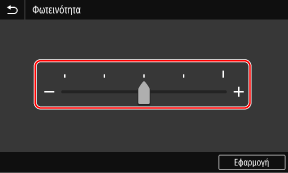 Πατήστε τα κουμπιά [+] και [-], για να ρυθμίσετε την τιμή. Όταν εμφανίζεται το ρυθμιστικό, όπως φαίνεται παρακάτω, μπορείτε να το σύρετε προς τα αριστερά ή προς τα δεξιά για να ρυθμίσετε την τιμή.