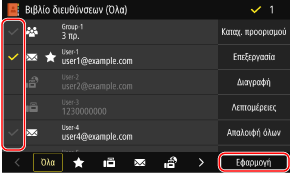 Για την οθόνη σάρωσης, στην καρτέλα [Ορισμός προορ], πατήστε [Βιβλίο διευθύνσεων].