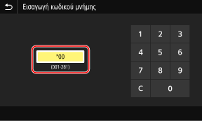 Εμφανίζεται η οθόνη [Εισαγωγή κωδικού μνήμης].