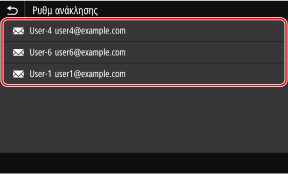 Στην καρτέλα [Ορισμός προορ] της οθόνης σάρωσης ή φαξ, πατήστε [Ρυθμ ανάκλησης].