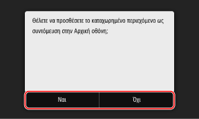 Όταν επιλέγετε [Ναι], εμφανίζεται ένα μήνυμα για το κουμπί συντόμευσης. Πατήστε [OK] για να προστεθεί ένα κουμπί συντόμευσης στην οθόνη [Αρχική].