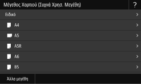 Μπορείτε να αλλάξετε το μέγεθος χαρτιού που εμφανίζεται στην οθόνη στο βήμα 1. Απόκρυψη μεγεθών χαρτιού που δεν χρησιμοποιούνται