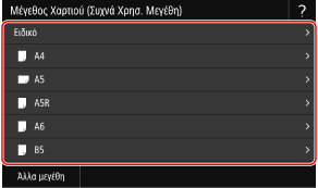 Όταν έχουν καταχωριστεί μη τυπικά μεγέθη χαρτιού που χρησιμοποιούνται συχνά, μπορείτε να τα καλέσετε πατώντας [S1] έως [S3].