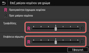 Στην περιοχή [Τροφοδότης] ή [Επιφάνεια σάρωσης], κάντε μια ρύθμιση δίνοντας προτεραιότητα στην αναπαραγωγή είτε του έγχρωμου κειμένου είτε του μαύρου κειμένου.