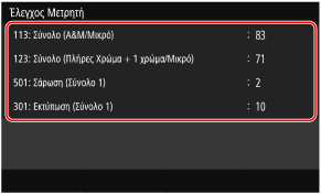 Έλεγχος του αριθμού των εκτυπωμένων σελίδων (έλεγχος μετρητή)