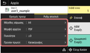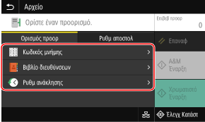 Εάν κατά την αποστολή ο προορισμός περιορίζεται λόγω των ρυθμίσεων ελέγχου ταυτότητας για τη λειτουργία αποστολής, δεν μπορείτε να καθορίστε άλλον προορισμό. Για λεπτομέρειες, επικοινωνήστε με τον διαχειριστή.