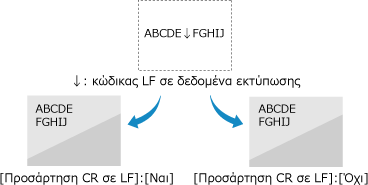 Επιλέξτε εάν θα γίνεται προσάρτηση ενός χαρακτήρα επαναφοράς (CR) όταν η συσκευή θα λαμβάνει κωδικό τροφοδοσίας γραμμής (LF).