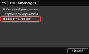 Αφού εμφανιστεί το μήνυμα [Οι ρυθμίσεις διαμορφώθηκαν.], εμφανίζεται η οθόνη [Ρυθμ. Κατάστασης ΛΨ].