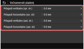 Primer: Ko prilagajate položaj tiskanja sprednje strani papirja v navpični smeri,