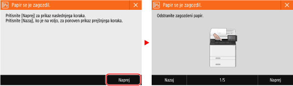 Pri odstranjevanju zagozdenega papirja ne izklopite naprave.Ko izklopite napravo, so podatki za tiskanje izbrisani.