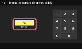 Se afișează ecranul [Introduceţi numărul de apelare codată].