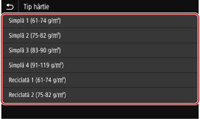 După anularea înregistrării în pasul 3, încărcați hârtia în tava universală. Când ecranul pentru setarea formatului și a tipului de hârtie este afișat pe panoul de operare, configurați setările în funcție de hârtia care se va utiliza.