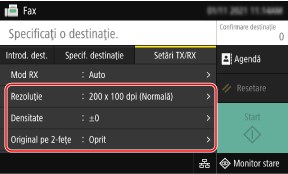 Specificați destinația în fila [Introd. dest.], fila [Specif. destinaţie] sau în [Agendă].