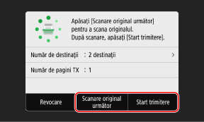 Pentru a continua scanarea originalelor, amplasați pe suprafața de scanare și apăsați pe [Scanare original următor].