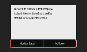 Verificarea stării de trimitere și salvare și a jurnalului datelor scanateApăsarea pe [Închidere] determină afișarea ecranului de scanare.