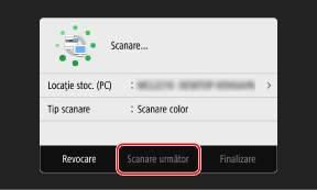 Pentru a continua scanarea originalelor, amplasați-le pe suprafața de scanare și apăsați pe [Scanare următor].