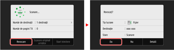 Urmați instrucțiunile pe ecran pentru a anula o operație de scanare.