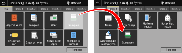 Регистрирайте често използваните настройки за сканиране, получаване/изпращане на факс или копиране и добавете бутони за бърз достъп.
