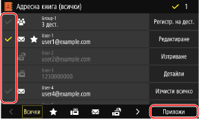 Изберете квадратчетата за местоназначения, които трябва да посочите, след което натиснете [Приложи].