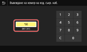Извежда се екранът [Въвеждане на номер на код. съкр. наб.].