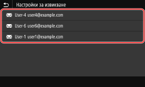 В раздела [Указване на дестин.] на екрана за сканиране или факс натиснете [Настройки за извикване].