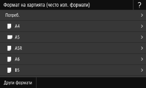 Натиснете [Други формати] и изберете размера на хартията от показания списък.