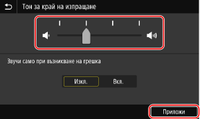 Плъзнете плъзгача наляво или надясно, за да регулирате силата на звука, и натиснете [Приложи].