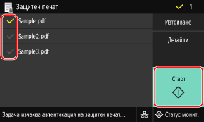 Поставете отметка в квадратчето за защитените данни за отпечатване и натиснете [Старт].