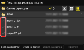 Екран за избор на файлове в USB паметМожете да изберете няколко файла.