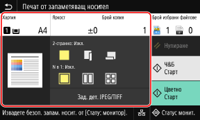 Поставяне и махане на USB паметАко се появи екранът за работа с носителя на паметта, натиснете [Отпечатване от запаметяващ носител] и преминете към стъпка 3.