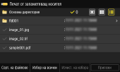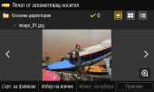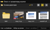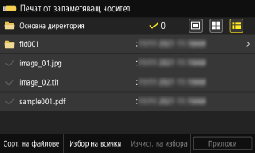 За да изберете всички показани файлове, натиснете [Избор на всички] в долната част на екрана. Ако има както PDF файлове, така и файлове с изображения (JPEG или TIFF файлове), се показва екран за избор на типа файл. Използвайте този екран, за да изберете типа файл, който искате да отпечатате.