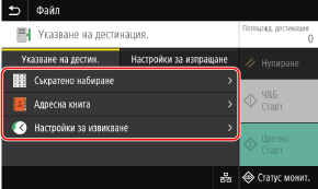 Ако местоназначението при изпращане е ограничено поради настройките за удостоверяване за функцията за изпращане, не можете да посочите друго местоназначение. За подробности се свържете с администратора.