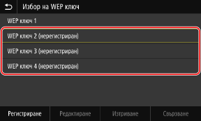3 | Изберете ключ за криптиране, който не е регистриран, и натиснете [Регистриране]. ![]() Показва се екранът за въвеждане на ключа за криптиране. |