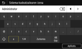 Sartu karaktere alfanumerikoak eragiketa-paneleko teklatua eta zenbakizko teklak erabiliz.