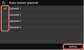 Hautatu lasterbide-botoi gisa esleitu nahi dituzun ezarpenen kontrol-laukiak eta sakatu [Aplikatu].