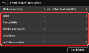 Eskaneatze-pantailaren edo faxak bidaltzeko pantailaren [Zehaztu helburua] fitxan, sakatu [LDAP zerbitzaria].