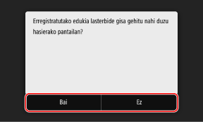 Eskaneatze- eta fax-ezarpenak erregistratzen dituzunean erregistratu beharreko xehetasunak ezartzerakoan helmuga zehaztuz gero, helmuga Gogoko ezarpenetan ere erregistratuko da. Erregistratu ezarpenak behar ez dituzun helmugak zehaztu ez dituzula ziurtatu bitartean.