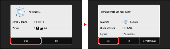 Jarraitu pantailaren argibideei kopiatze eragiketak bertan behera uzteko.