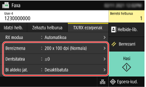 [TX/RX ezarpenak] fitxan, konfiguratu eskaneatze-ezarpen originalak.