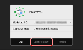 Makina USB bidez konektatutako ordenagailu batekin soilik erabiltzen duzunean, eskaneatze-pantaila bistaratuko da. Joan 5. urratsera.