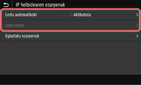 [IP helbidearen ezarpenak (lortu autom.)] pantaila agertzen bada.