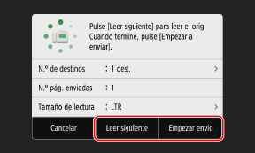 Si desea escanear más originales, colóquelos sobre el cristal de copia y pulse [Leer siguiente].